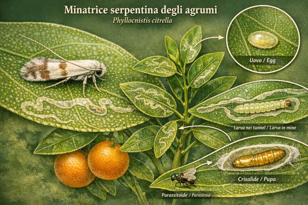 Il controllo delle Gracillariidae richiede un approccio integrato. L’introduzione o la conservazione di parassitoidi naturali, come Hymenoptera piccoli e specialisti, è altamente efficace nel ridurre le larve. Le tecniche agronomiche includono la potatura dei germogli infestati e la gestione attenta dell’irrigazione e della fertilizzazione per migliorare la resistenza delle piante. L’uso di insetticidi deve essere ponderato e limitato, privilegiando prodotti selettivi a basso impatto ecologico.