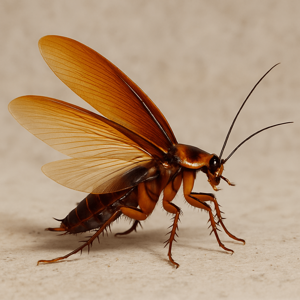 English: Flying cockroaches are insects that often provoke disgust and fear, sometimes more than their non-flying relatives. Belonging to the order Blattodea, some species of cockroaches have developed the ability to fly or glide, making them more mobile and, in certain situations, harder to control. This manual explores in depth their morphological traits, key species, behavior, habitat, reproduction, and interaction with humans.