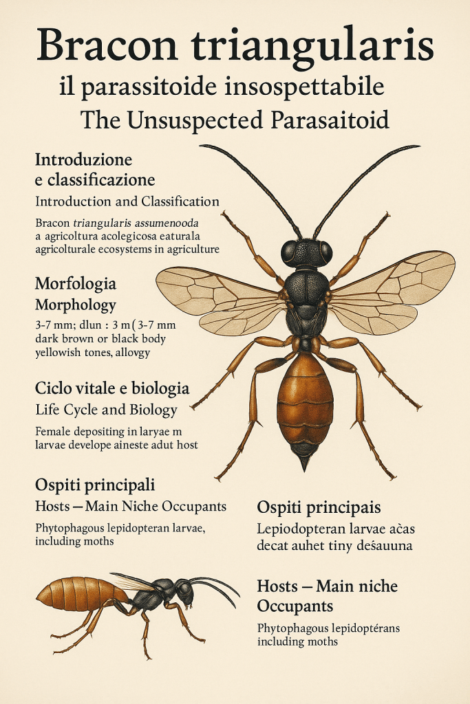 Bracon triangularis is a parasitoid hymenopteran belonging to the family Braconidae, one of the largest and most diverse groups among parasitoid insects. These insects play a fundamental role in agricultural and natural systems as biological regulators of phytophagous populations.