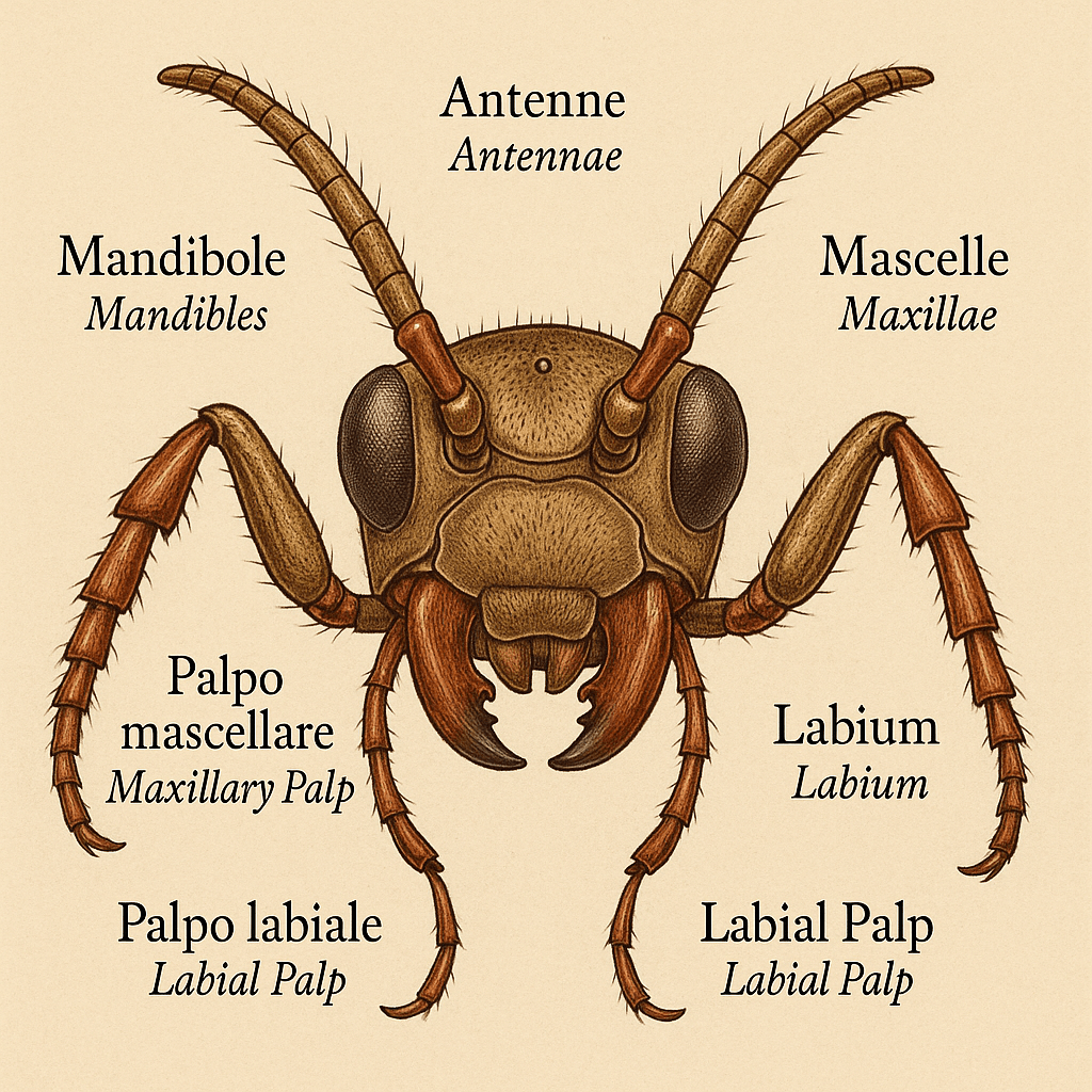 Nel vasto regno degli insetti, le appendici del capo svolgono un ruolo essenziale per la sopravvivenza, la comunicazione e la percezione dell’ambiente. Antenne, mandibole, mascelle e palpi sono strutture altamente specializzate, frutto di milioni di anni di evoluzione. Questo articolo esplora nel dettaglio le loro funzioni, la varietà morfologica e il significato adattativo.