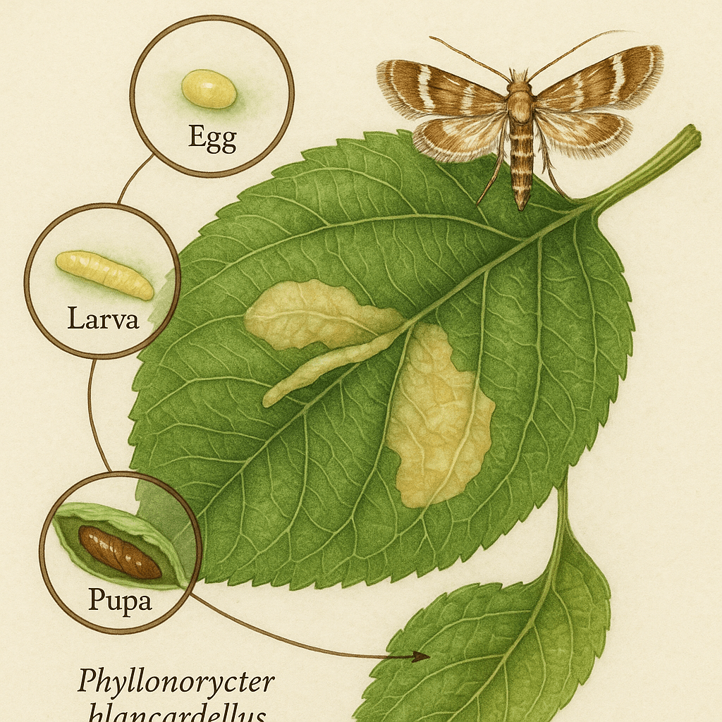 Phyllonorycter blancardellus is a striking example of how even a tiny insect can cause major issues in both ornamental and productive green spaces. Early detection, ecological strategies, and limited pesticide use are essential to protect apple orchards and the environment.