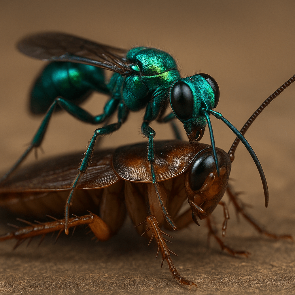 Nel vasto universo degli insetti, esistono creature capaci di strategie tanto sofisticate da lasciare sbalorditi persino i neuroscienziati. Una di queste è la vespa smeraldo (Ampulex compressa), una piccola ma straordinaria vespa parassitoide tropicale. A prima vista, potrebbe sembrare una comune vespa, ma il suo comportamento biologico nasconde una raffinatezza unica: non punge semplicemente la sua vittima, ma esegue una vera e propria neurochirurgia di precisione, trasformando uno scarafaggio in uno zombie vivente al suo servizio.
