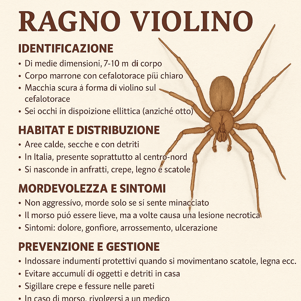 Il ragno violino, pur essendo un animale potenzialmente pericoloso, non rappresenta una minaccia concreta per la maggior parte della popolazione. Conoscere le sue abitudini, imparare a riconoscerlo e adottare misure preventive è la chiave per conviverci serenamente. Più che un nemico da temere, è un inquilino discreto che contribuisce a mantenere sotto controllo altri ospiti ben più sgraditi nelle nostre case.