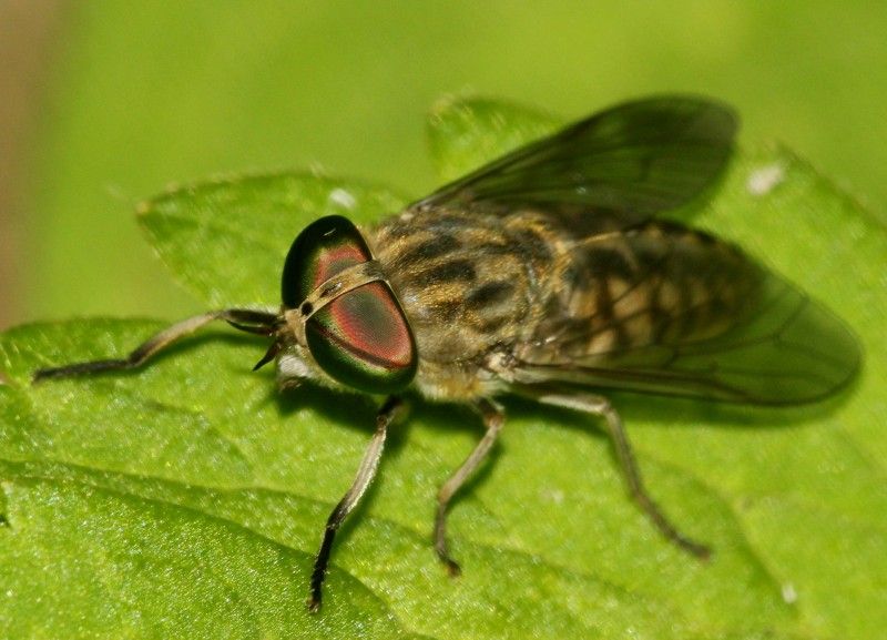 Only females are hematophagous: they require blood for egg development. Males feed primarily on nectar and plant juices. Females use their antennae and eyes to locate hosts, preferring cattle, horses, and other large mammals. The bite is painful, as their mouthparts are cutting and tear the skin to facilitate blood feeding.