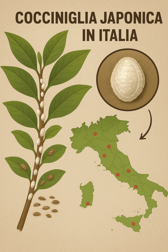 The Japanese scale was initially reported in port areas and nurseries, then spread rapidly. It is now present in many regions of central and southern Italy, with significant outbreaks also detected in the north, especially in mild-climate areas like Liguria and Lake Garda.