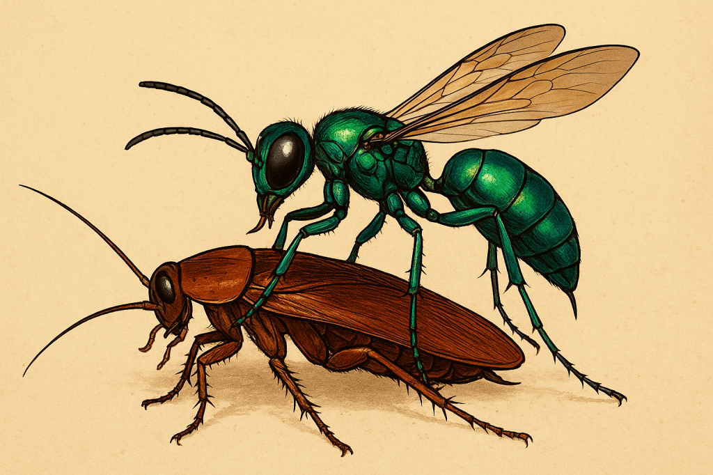 Che si parli di “vespa smeraldo” o di emerald cockroach wasp, il messaggio è lo stesso: larva parassitoide e manipolazione comportamentale di una blatta specifica, attraverso un veleno di precisione che spegne il riflesso di fuga. Un capolavoro evolutivo, più utile per capire l’ecologia e l’etologia che per risolvere, da solo, problemi di disinfestazione.