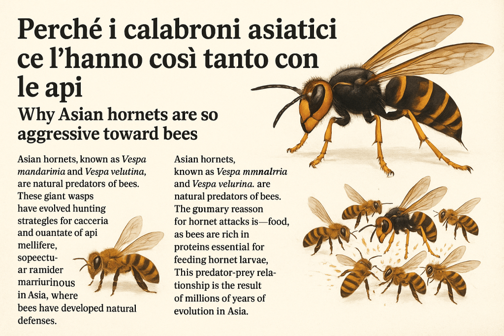 The main reason hornets attack bees is for food: bees are rich in proteins essential for feeding hornet larvae. This predator-prey relationship is the result of millions of years of evolution in Asia, where bees have developed natural defenses that do not exist in European species.