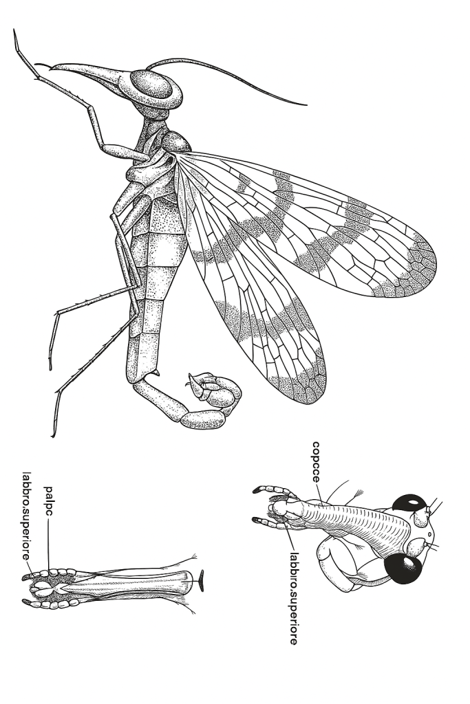 Most Mecopterans are omnivorous or opportunistic predators. Adults feed on small dead insects, aphids, or animal remains, but also on nectar and pollen. Their larvae, living in moist soil, are also predatory or saprophagous and play a key role in recycling organic matter.