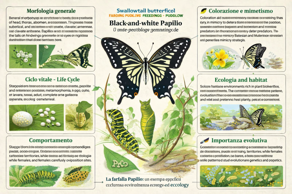 La colorazione di questa farfalla rientra in un sistema evolutivo complesso. Molte specie del genere Papilio utilizzano strategie di mimetismo batesiano o mülleriano. Il contrasto netto tra nero e bianco può sembrare semplice, ma è il risultato di pressioni selettive prolungate nel tempo.