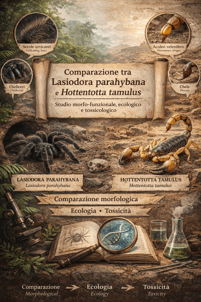 Il confronto tra Lasiodora parahybana e Hottentotta tamulus evidenzia due strategie evolutive profondamente diverse all’interno degli aracnidi. La prima rappresenta un modello di predatore robusto, relativamente passivo e a bassa pericolosità per l’uomo. Il secondo incarna invece un sistema altamente efficiente, mobile e potenzialmente letale.