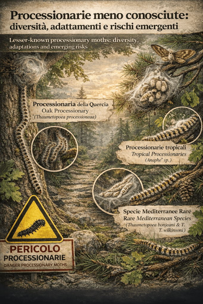 Le processionarie meno conosciute rappresentano un universo entomologico complesso e ancora in gran parte da esplorare. La loro diversità, unita alla capacità di adattamento e ai potenziali rischi sanitari, le rende un gruppo di grande interesse sia scientifico che pratico.