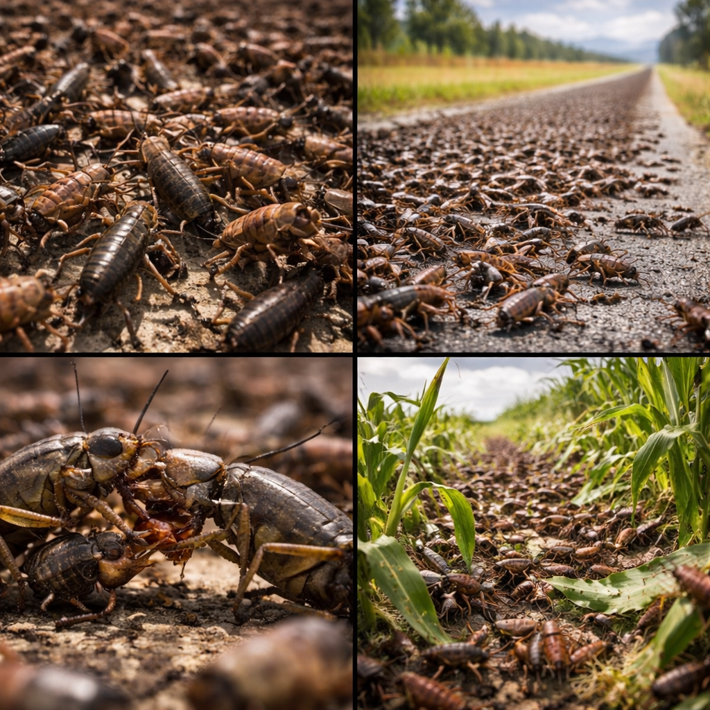I cosiddetti “Mormon crickets” non sono veri grilli, bensì tettigonidi appartenenti alla specie Anabrus simplex, insetti ortotteri incapaci di volare ma dotati di straordinarie capacità di dispersione terrestre. Il loro nome deriva da eventi storici nel XIX secolo, quando sciami devastanti minacciarono i raccolti dei coloni nello Utah. Oggi, questi insetti continuano a rappresentare un fenomeno ecologico di grande rilevanza, soprattutto negli Stati Uniti occidentali, dove cicli di esplosione demografica portano a vere e proprie invasioni di massa.