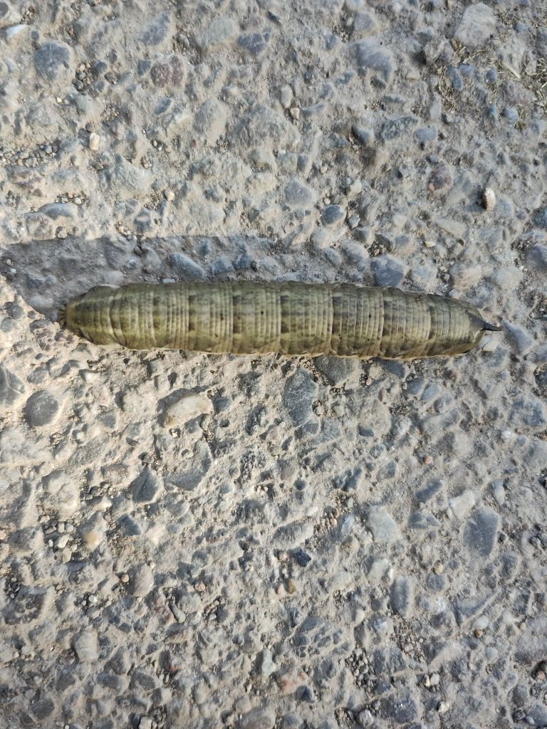 EN: Finding a convolvulus hawk‑moth caterpillar is not a cause for concern: it is neither venomous nor urticant. For outdoor workers the rule is to observe without handling unless necessary. If relocation is needed (e.g., to protect the caterpillar from trampling), use a stick or gloves and move it onto a nearby leaf. Avoid repeated handling to prevent stress.