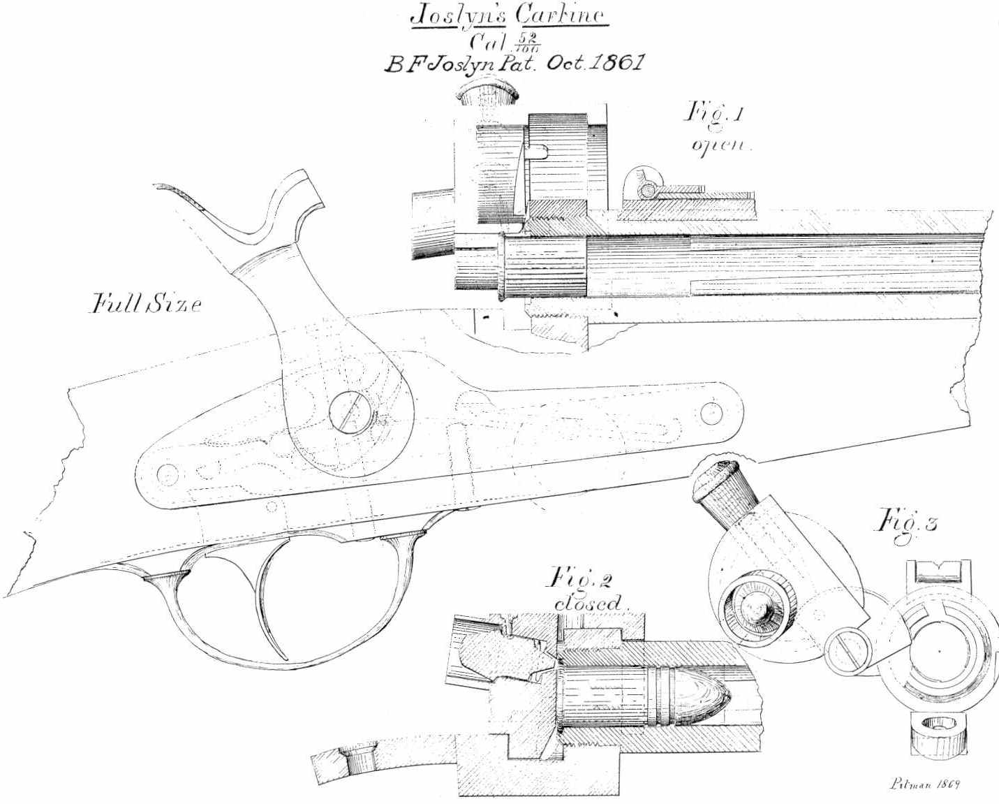 Questo fucile progettato nel 1855 e prodotto fino al 1865, era un arma a retrocarica con otturatore a blocco imperniato dalla parte sinistra(che fu brevettato dallo stesso Joslyn) utilizzava cartucce remfire calibro 54 o 58 che poi tanti di questi fucili furono convertiti nel calibro 56-70 governament. Di questo fucile ne fecero un modello aggiornato con meno problemi della prima versione che era il modello 1864; quest’arma fu acquistata sia dalla marina degli Stati Uniti che dal governo americano nella prima versione; e usato sia nella guerra franco-prussiana che nella guerra di secessione americana.