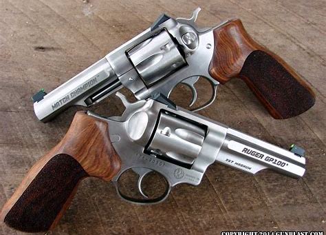 Questo revolver fu introdotto con tamburo a 6 colpi, disegnato da Lerry Lanson e presentata nel 1986; in pratica un revolver in doppia e singola azione. Quest’arma è uno dei migliori revolver del secolo scorso per via di molte caratteristiche; il suo pregio più grande sta nel meccanismo del tamburo a chiusura tripla; infatti il sistema della gp100 fa si che grazie a una barra studiata il rilascio di pressione in caso di caduta, e così facendo anche cadendo a cane armato l’arma non farà fuoco(in verità c’è pure un altra caratteristica a suo favore che è la possibilità di personalizzazione).Lo svincolo del tamburo avviene, tirando perpendicolarmente una levetta posta di fianco al tamburo, il rinculo è ridotto dal suo notevole peso; anche se l’arma è molto maneggevole e anche lo smontaggio, è semplice perché è tenuta insieme da perni e viti. Questo modello fu prodotto in acciaio inox 4140 nel 1987, poi nel 1988 allargarono la linea col modello GP141; in fine il revolver non ha solo pregi ma anche un grosso difetto che è dato dal materiale che si arrugginisce facilmente quindi va manutenzionato spesso.