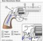 Il tamburo prima fisso poi basculante è dotato di 5 o 6 camere caricate un colpo alla volta oppure con appositi carichini, l’espulsore è direttamente collegato al tamburo dalla parte opposta dell’ingresso delle camere di cartuccia permettendone l’espulsione dei bossoli spenti. La grandissima differenza tra pistola e revolver è che una semiautomatica per essere definita tale dopo aver finito il ciclo di sparo riarma camerando una nuova cartuccia e per fare questo è dotata di un sistema di funzionamento quale può essere il sistema metastabile o labile se sono calibri minori, il revolver invece è molto più semplice e ci vuole anche più tempo a diventare veloci in ambito sportivo.