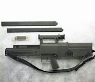 Questo prototipo, che fu un progetto principalmente tedesco della Germania dell’ovest; fu sviluppato tra gli anni ’60 e gli anni ’80. Il G11 è un fucile d’assalto un po’ particolare per come lo vedo io, aveva un sistema di alimentazione molto simile al FN P90 il funzionamento era a presa a gas con otturatore a rulli; il rinculo nella modalità automatica( che aveva raffiche da 3 colpi) veniva percepita al terzo colpo; questa sequenza di colpi a 3 alla volta si basava su cartucce CASELESS cioè senza bossolo; questa munizione nel g11 fu concepita per ridurne il peso e il costo, fatte in nickel e ottone eliminavano il problema dell’estrazione( una delle prime munizioni CASELESS risalgono al 1850 con la cartuccia ROCKET BALL). Il ricupero a gas in quest’arma riattiva il sistema a rulli facendo si che venga presa una nuova cartuccia dal caricatore; il proietto al momento che viene prelevato dal caricatore ruota di 90 gradi fino che non si allinea con la canna, se per caso non venga correttamente camerato nella camera il fucile può essere scaricato manualmente ruotando in senso inverso; il sistema di armamento ruota facendo uscire il bossolo non esploso dalla camera tramite uno sportello situato sul lato inferiore dell’arma.